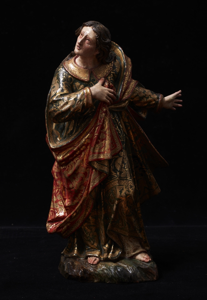 Manuel Chili, also known as “Caspicara”, is considered Bernardo de Legarda’s (1700 – 1773) successor in the complex art of religious imagery and, along with José Olmos (Pampite) (1670 – 1730), he constitutes the purest essence of the famous Quito School. It is thought he was born between 1720 and 1725 in the Ecuadorian capital. His nickname alone, which in the Kichwa language means “Wooden Face” or “Stick Face”, leads one to imagine a man with a copper-coloured countenance, probably with the same smoothness as the wood or sticks he transformed into the works of art that immortalized both him and the indigenous race. According to the historian Jaime Aguilar Paredes, Manuel Chili “gave himself up to religious imagery from an early age, attaining a peerless skill that would put him at the fore of the sculptors of his age, and it is no exaggeration to place him on the same level as the most famous European sculptors”.