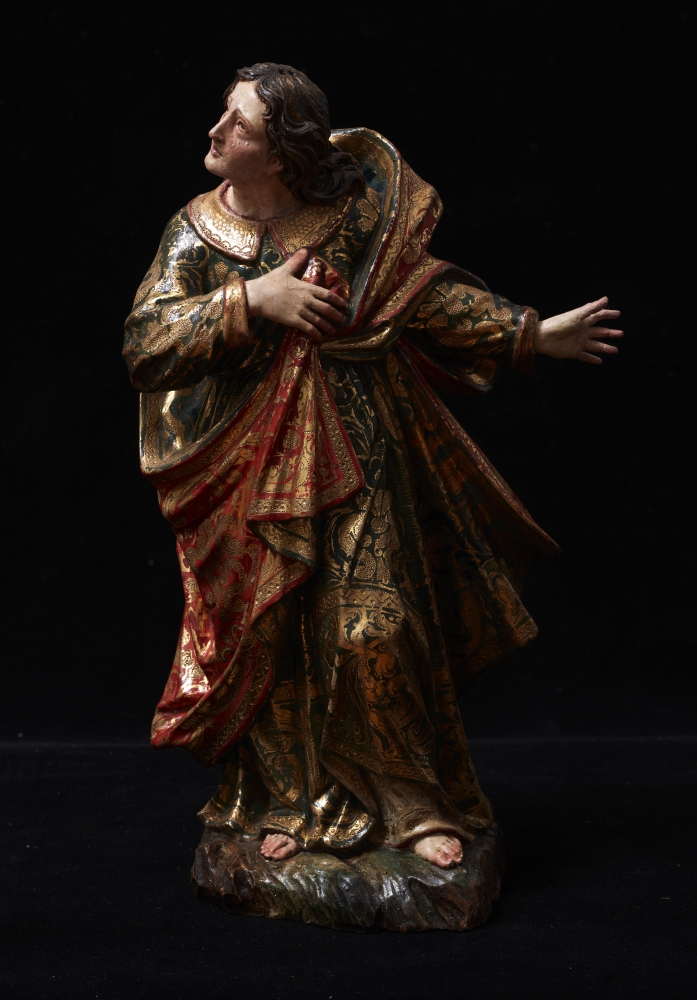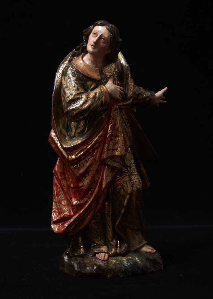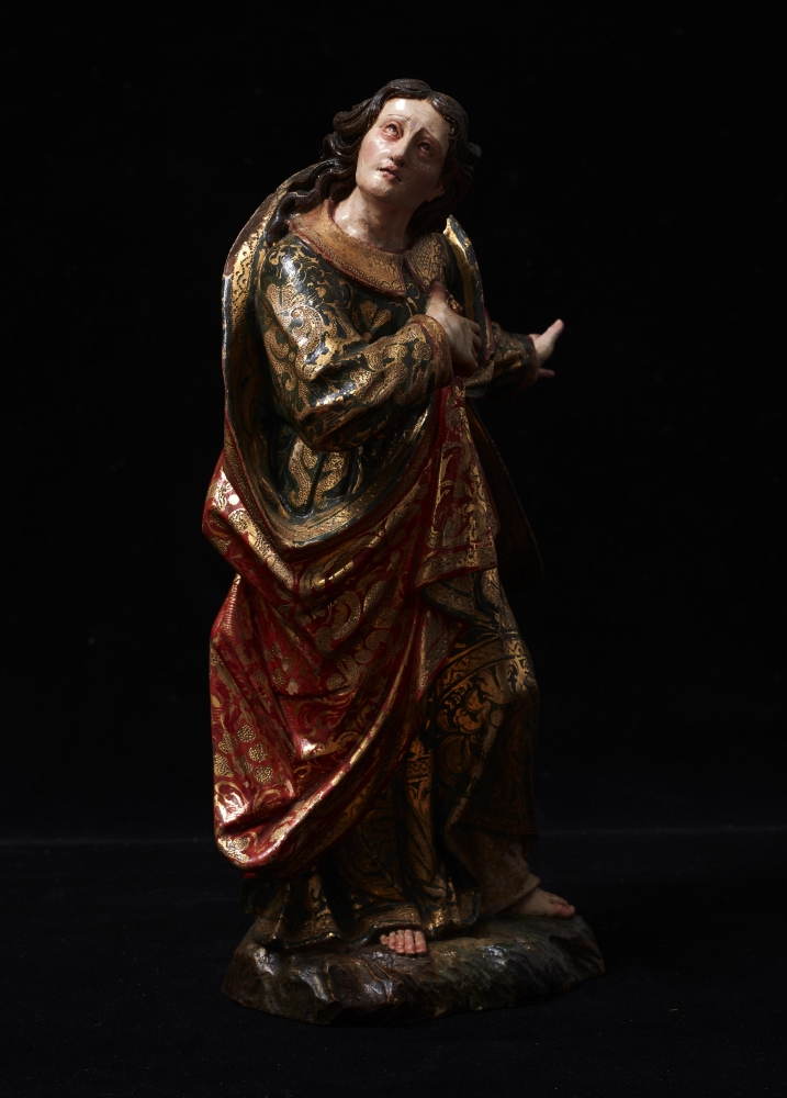 It is worth highlighting the great estofado and graffito work seen in the garments, the subtle and varied tones and skill shown in executing the folds and the sense of depth.