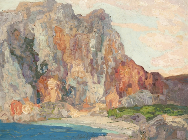 From his arrival in Majorca in 1914, Anglada-Camarasa set aside the representation of female figures and folklore, instead resuming his preferred theme prior to his stay in Paris: landscapes. However, he approached landscapes with a new eye, totally different from his first works. He used a much more daring palette of colours to represent nature, following the developments of the Fauvists in this sense, and elaborated his compositions juxtaposing patches and impastos of colour in the manner of the Impressionists. In contrast to the Impressionists however who worked sur le motif, directly in situ, he took notes which he used later to create works in his studio.